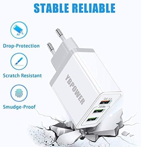 30W Cargador USB de Pared con 3 Puertos,Quick Charge 3.0